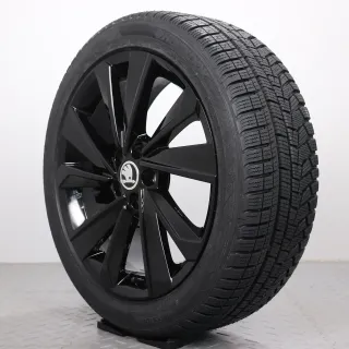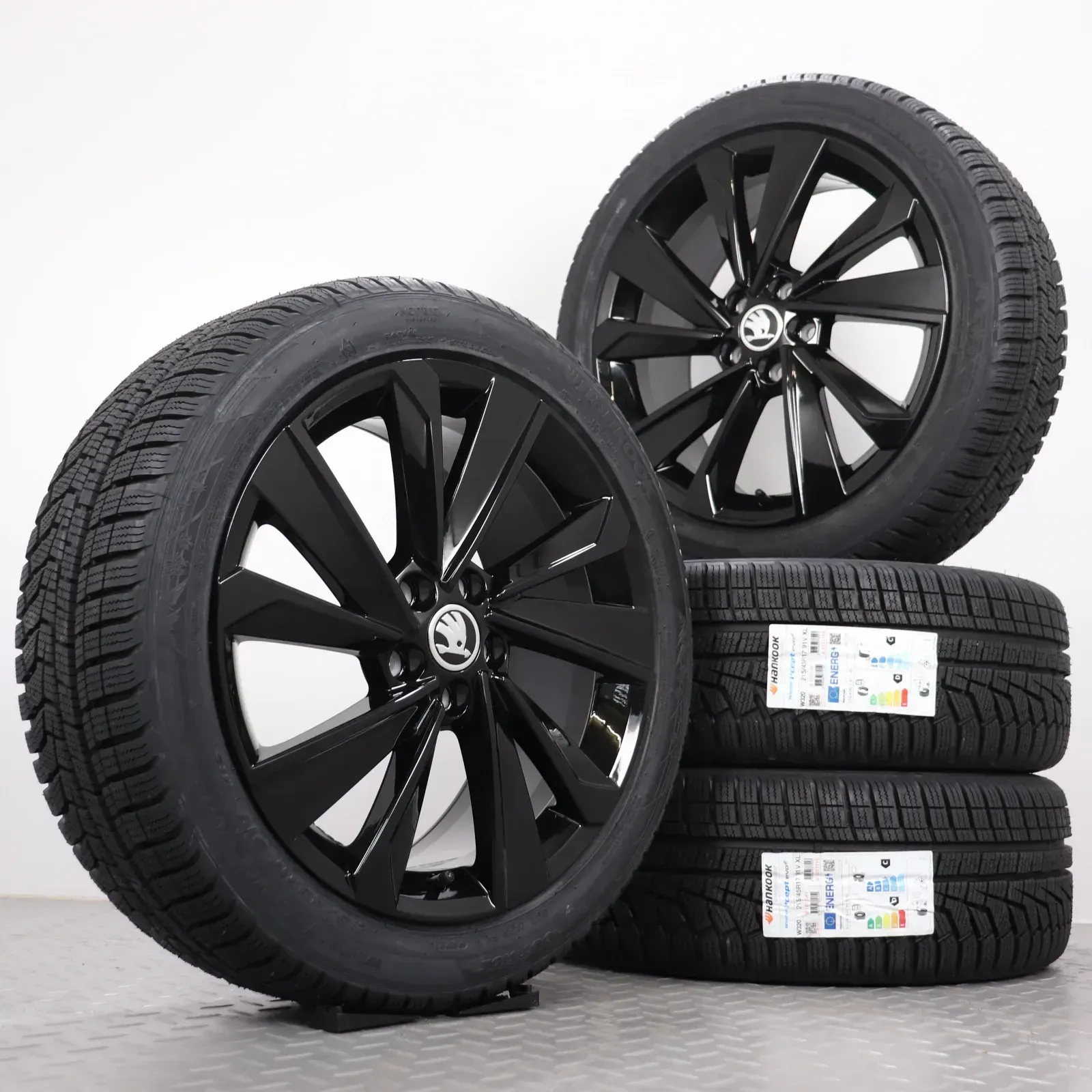 Winterräder 17 Zoll Skoda Fabia 4 PJ Original Felgen 6VA601025T Winterreifen 215/45R17 91V XL (Extra Load) Hankook Winter i*cept evo2 Riegel schwarz glanz 7x17ET51 5x100 Alufelgen