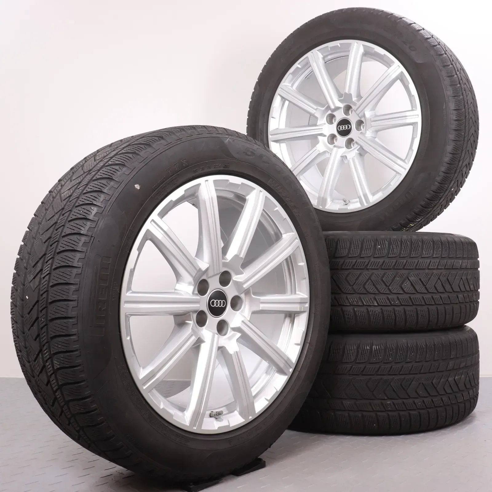 Winterräder 20 Zoll Audi Q7 SQ7 4M Original Felgen 4M0601025AE Winterreifen DOT21 4,5-5mm 285/45R20 112V XL AO (Audi-Original) Pirelli Scorpion Winter 10-Arm Design silber 9x20ET33