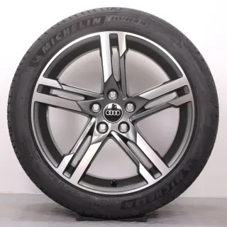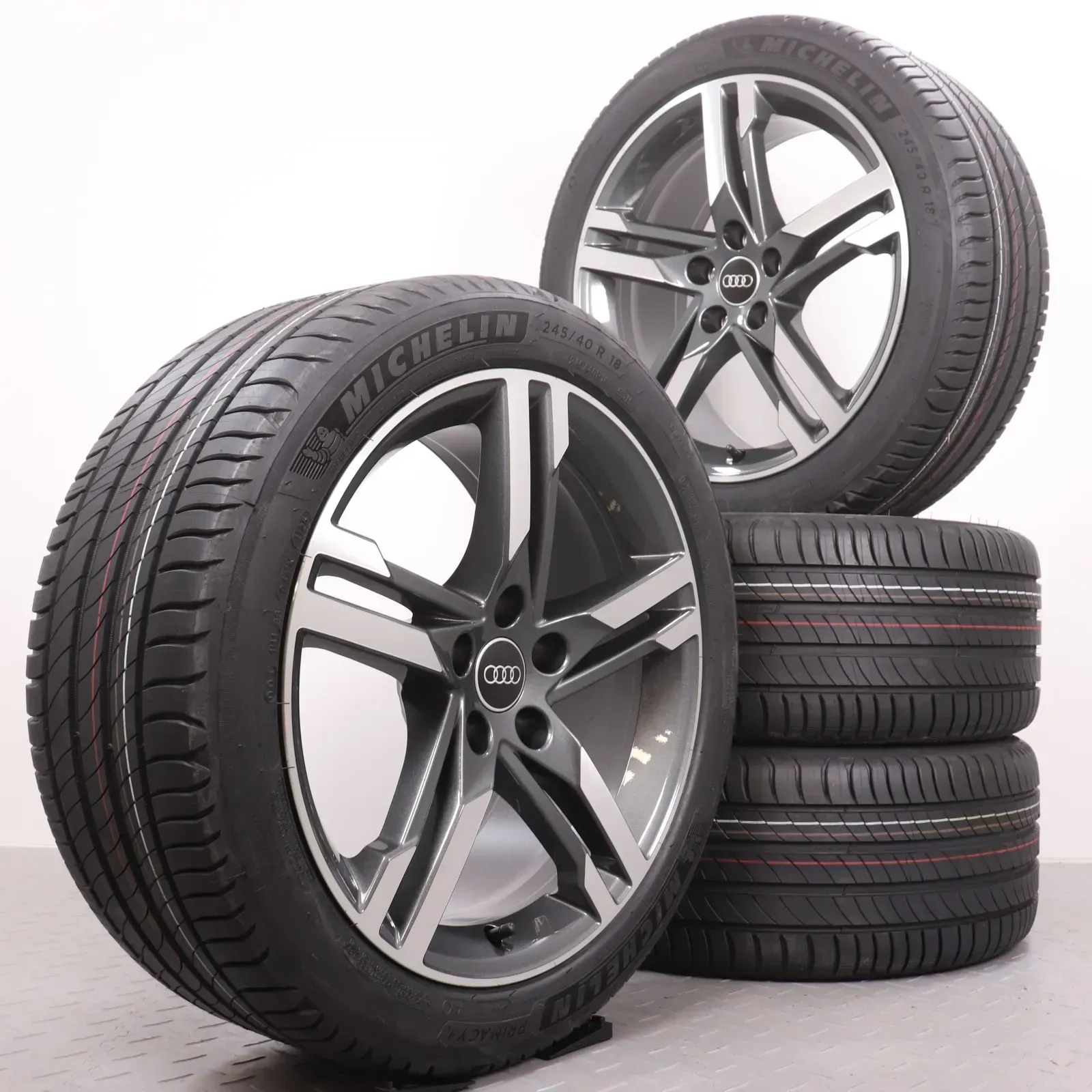 Sommerräder 18 Zoll Audi A4 & S4 8W B9 Original Felgen 8W0601025M Sommerreifen 245/40R18 93H AO Michelin Primacy 4 5-Doppelspeichen-Design kontrastgrau glanzgedreht NEU