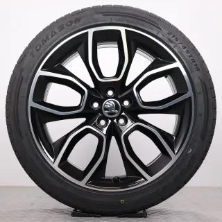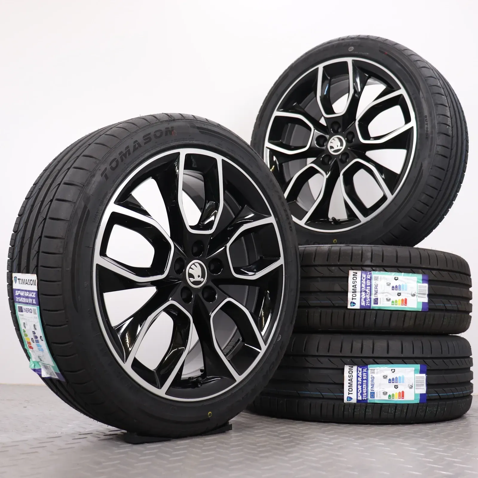 Sommerräder 18 Zoll Skoda Kamiq NW Original Felgen 658601025G Sommerreifen 215/45R18 93Y XL (Extra Load) Tomason Sportrace Manaslu schwarz glanzgedreht 7x18ET39 5x100 Alufelgen