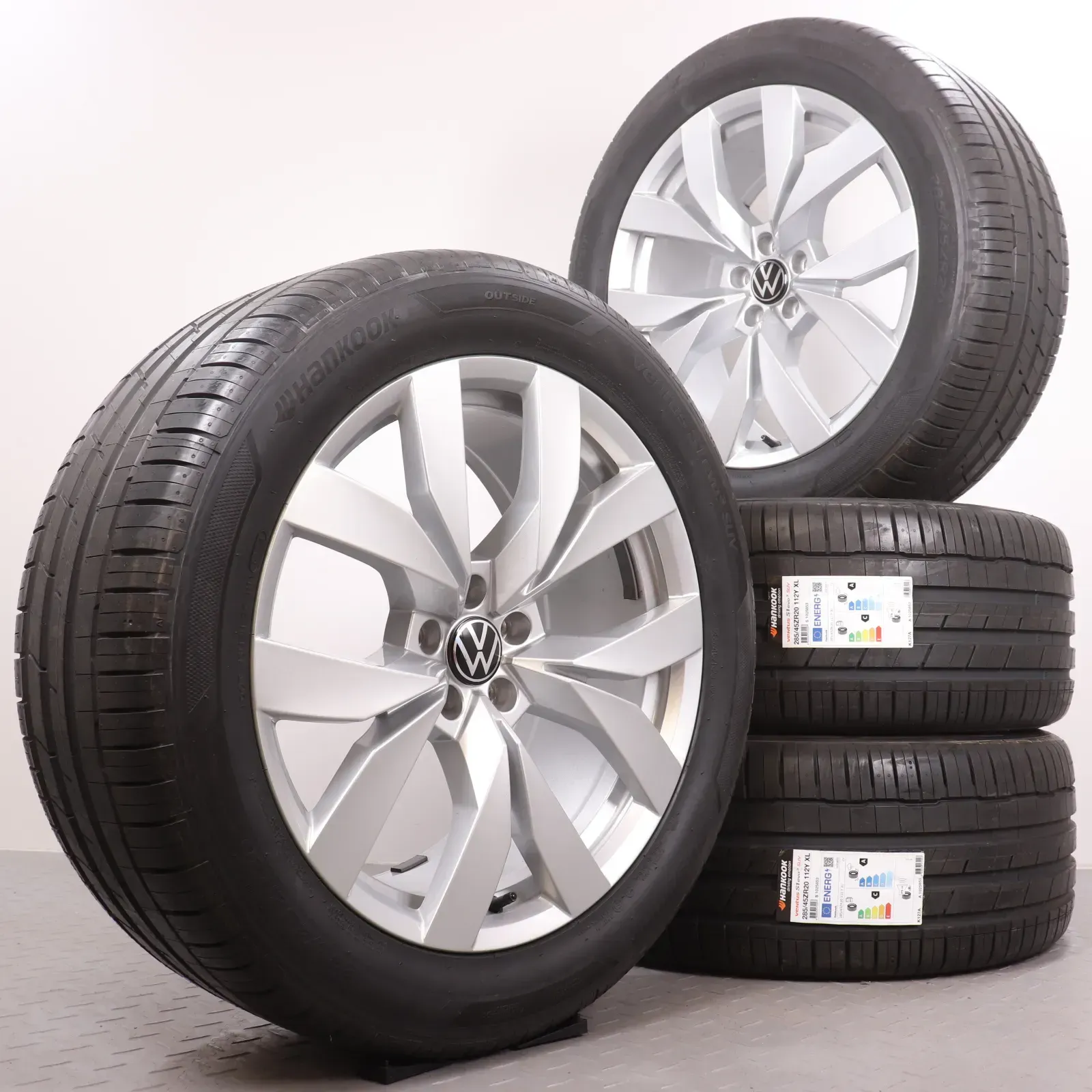 Sommerräder 20 Zoll VW Touareg CR Original Felgen 760601025C Sommerreifen 285/45R20 112Y XL Hankook Ventus S1 EVO3 SUV NEU Montero silber 9x20ET33 5x112 Alufelgen
