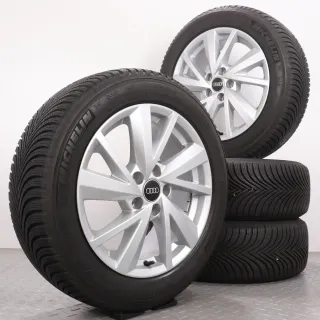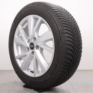 Winterräder 17 Zoll Audi Q2 GA Original Felgen 81A601025C Winterreifen DOT23 8mm 215/55R17 94V AO Michelin Alpin 5 5 V-Speichen Design Silber 7x17ET45 5x112 Alufelgen