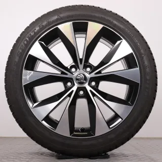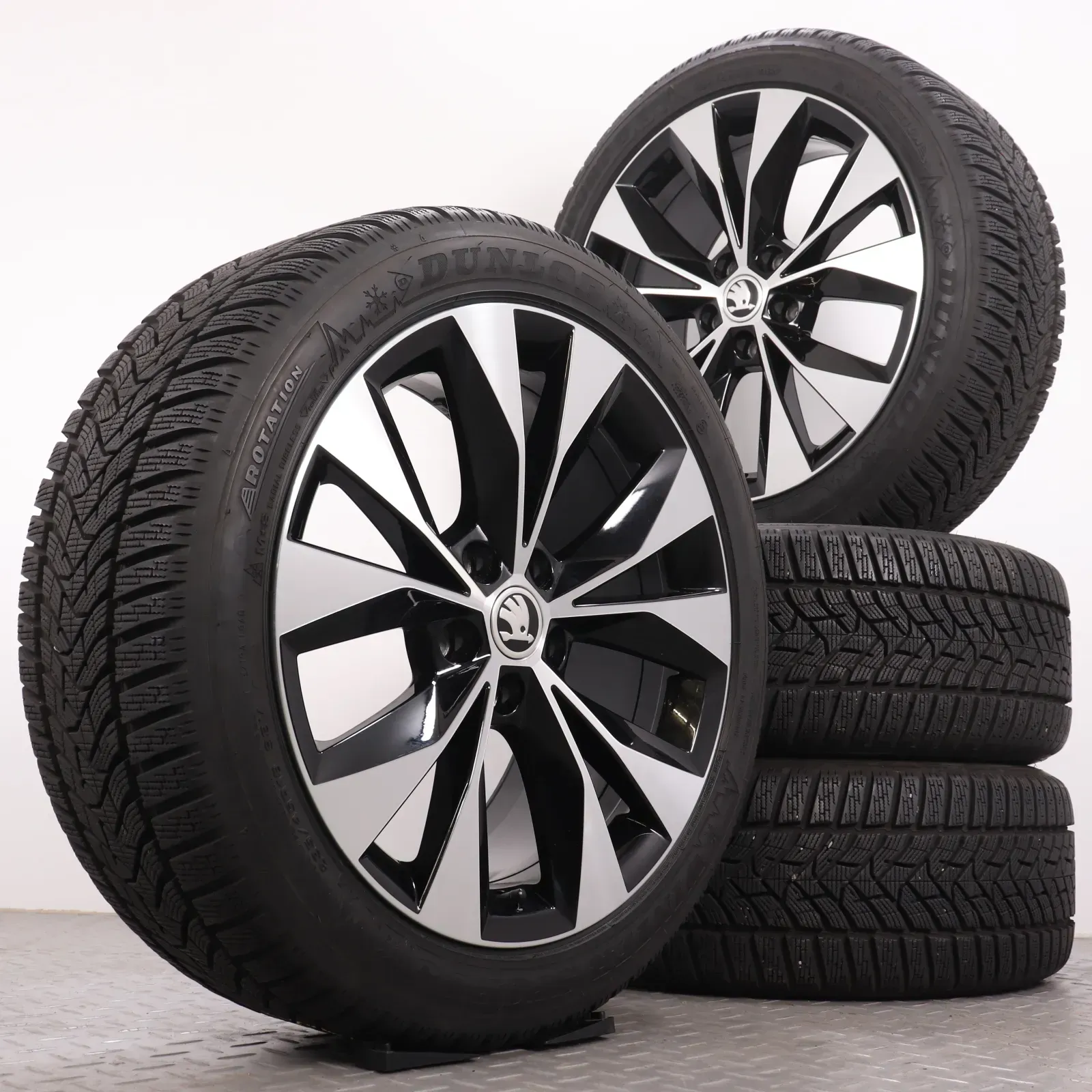 Winterräder 18 Zoll Skoda Superb III 3V Original Felgen 3V0601025P Winterreifen 8-8,5mm DOT21&22 235/45R18 98V XL Dunlop Winter Sport 5 Cassiopeia schwarz gedreht 8x18ET44 5x112