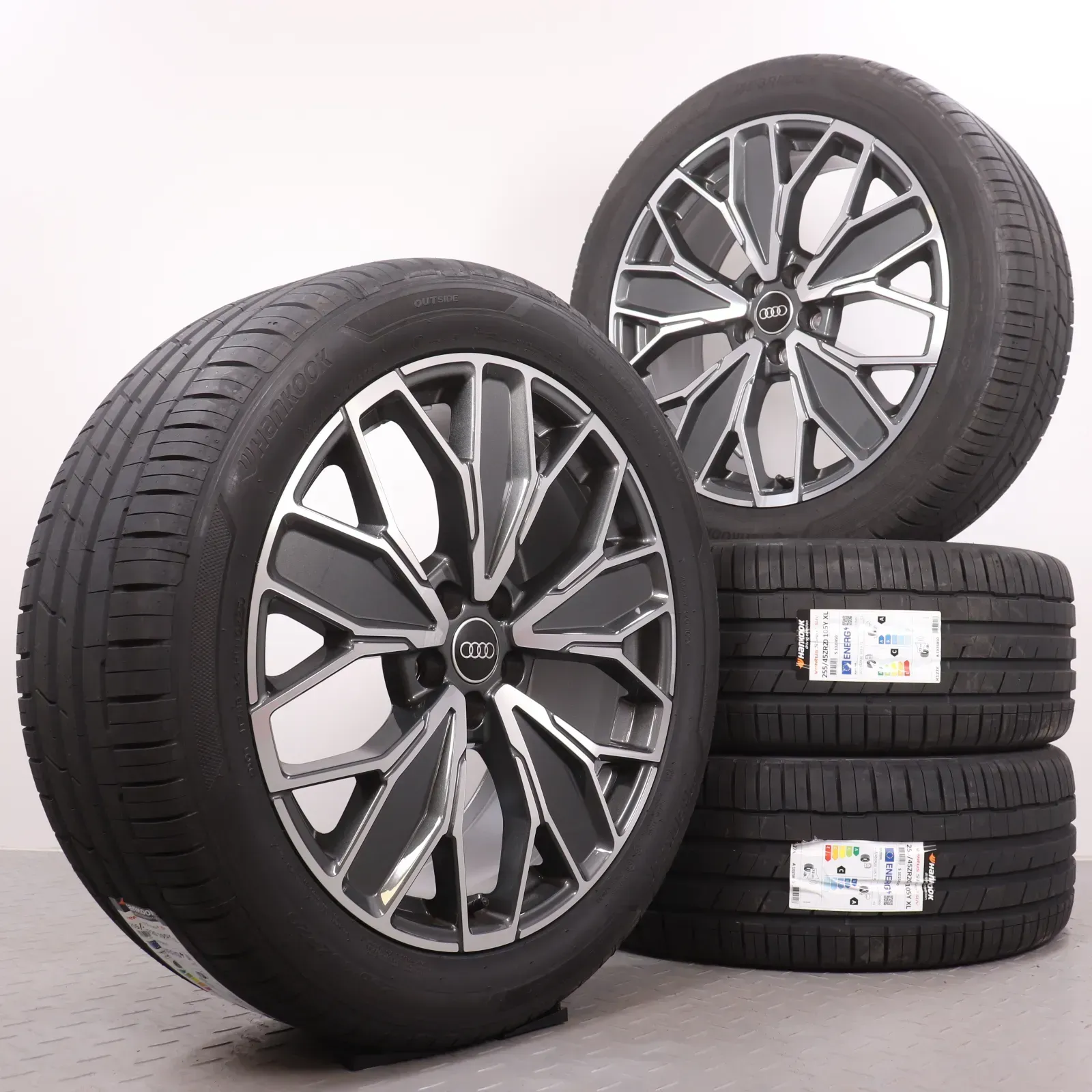 Sommerräder 20 Zoll Audi Q5 SQ5 GU Original Felgen 8MA601025H Sommerreifen 255/45R20 105Y XL Hankook Ventus S1 EVO3 SUV 5-Y-Doppelspeichen graphitgrau glanzgedreht NEU