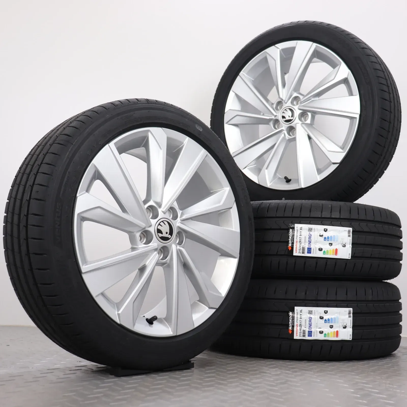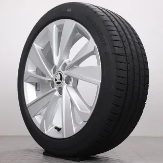 Sommerräder 17 Zoll Skoda Fabia 4 PJ Original Felgen 6VA601025T Sommerreifen 215/45R17 91Y XL (Extra Load) Hankook Ventus Prime 4 Riegel silber 7x17ET51 5x100 Alufelgen NEU