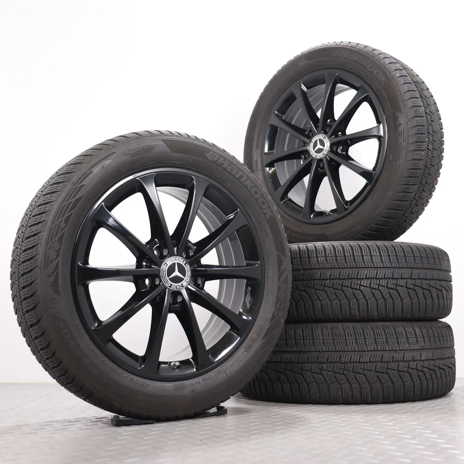 Winterräder 17 Zoll Mercedes-Benz A W177 B W247 CLA C118 X118 Original Felgen A1774010300 Winterreifen 205/55R17 91H MO (Mercedes-Original) Hankook Winter i*cept evo2 schwarz glanz