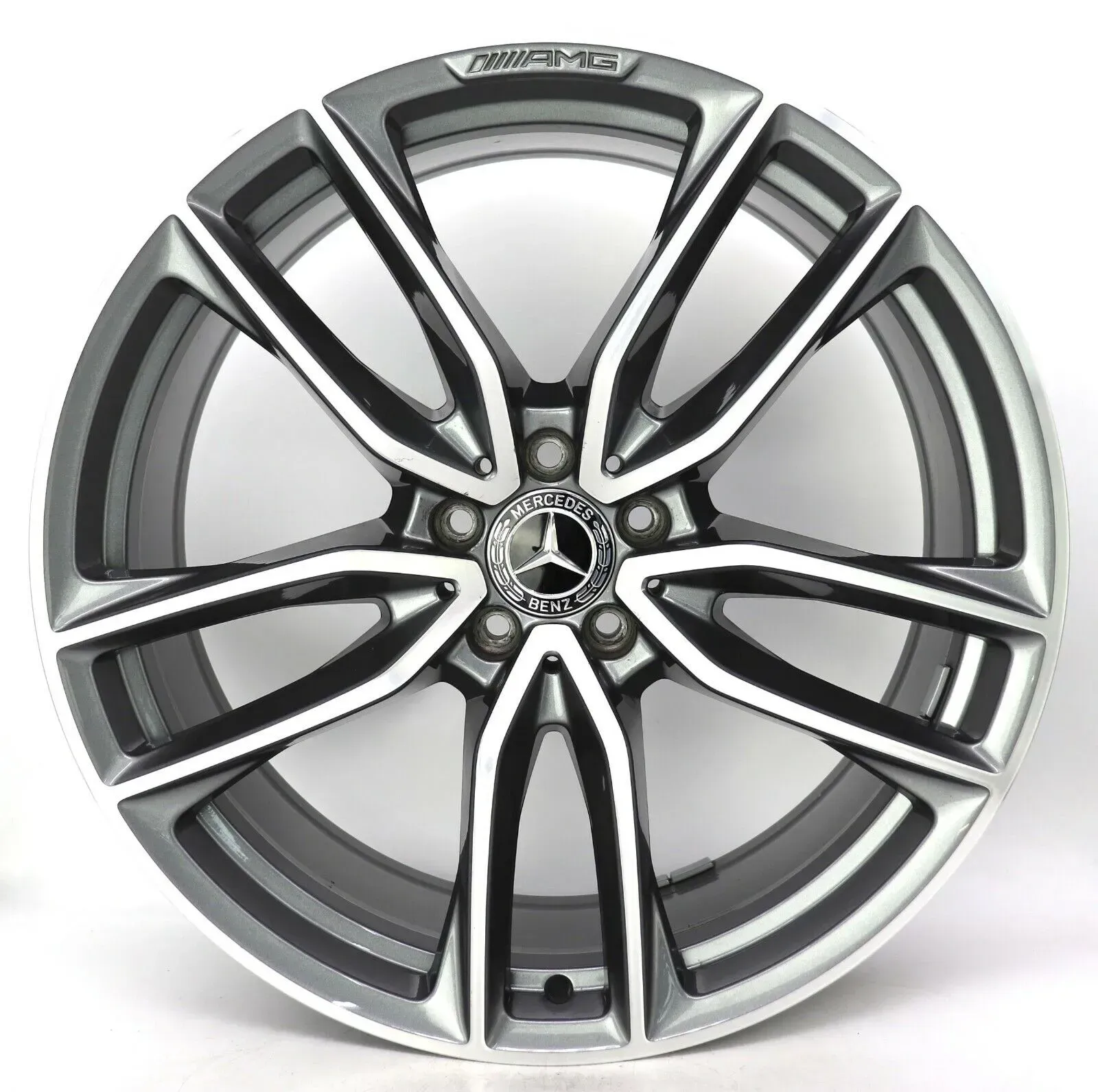 Alufelge 21 Zoll Mercedes-Benz GLC C253 X253 AMG Original Einzelfelge Ersatzfelge "AMG 5-Doppelspeichen" A2534013800 Grau glanzgedreht 9,5x21ET30 5x112 66,6mm Gebraucht