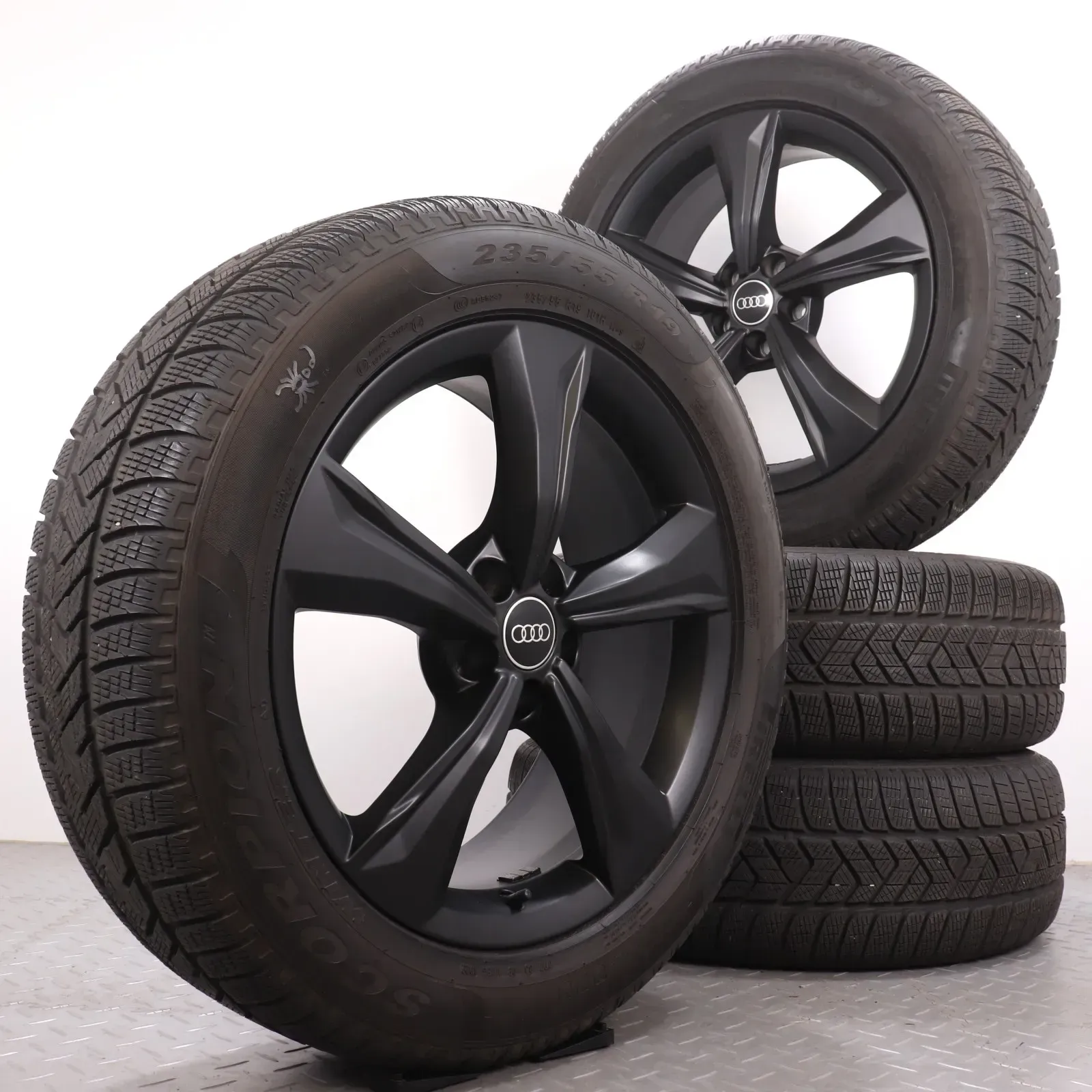 Winterräder 19 Zoll Audi Q5 SQ5 FY Original Felgen 80A601025K Winterreifen DOT22 6,5mm 235/55R19 101H AO Pirelli Scorpion Winter 5-Arm-Dynamik-Design schwarz matt 7x19ET34