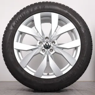 Winterräder 20 Zoll VW Touareg CR Original Felgen 760601025C Winterreifen DOT22 & 19 4,5 & 5mm 285/45R20 112V XL AO Goodyear Ultragrip 8 Performance Montero silber 5x112