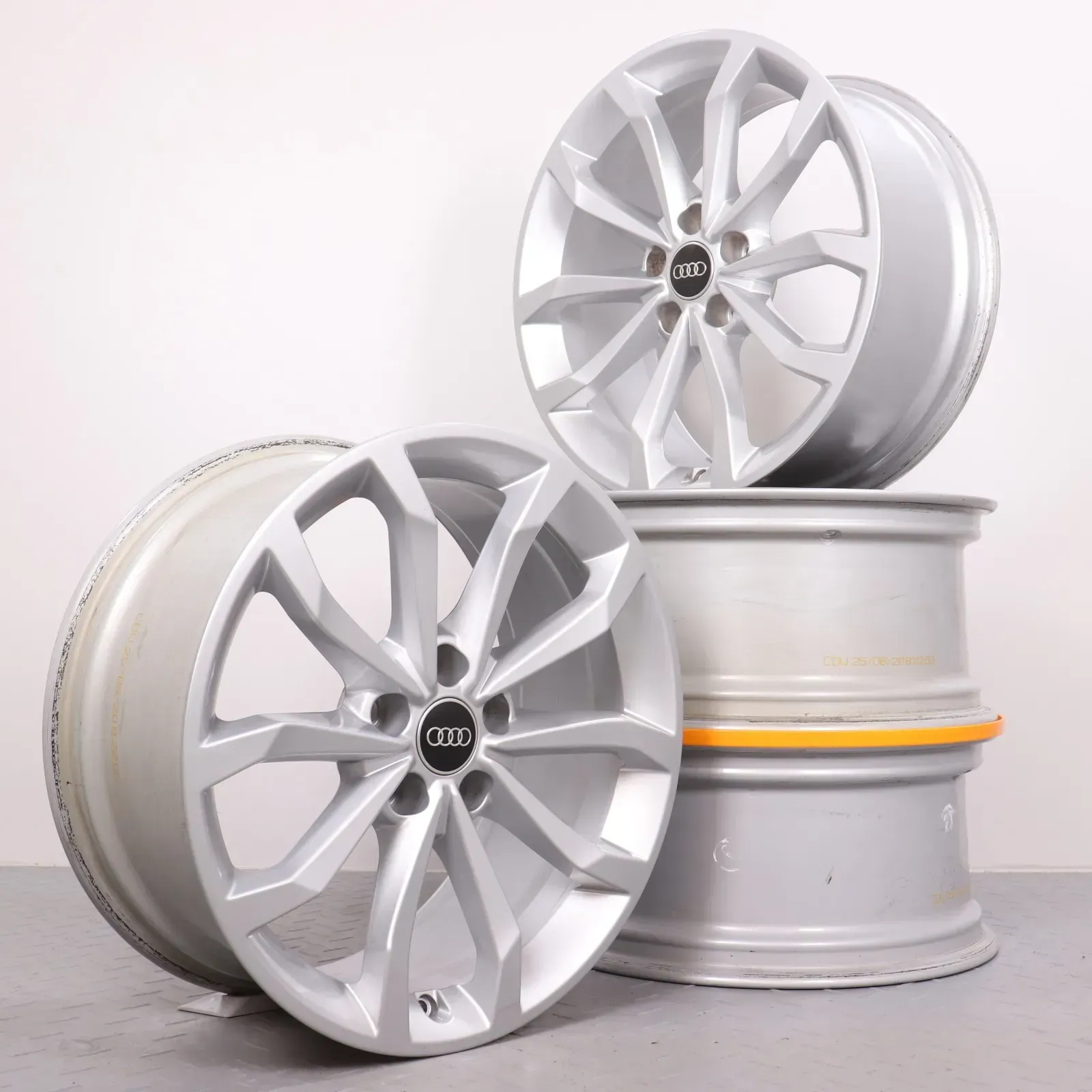 Alufelgen 18 Zoll Audi A4 S4 8W B9 Original Felgen Felgensatz 10-Speichen-V-Design 8W0601025H silber 8x18ET40 5x112 66,6mm Gebraucht