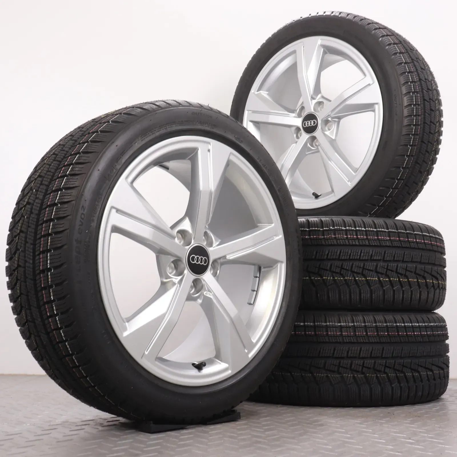 Winterräder 17 Zoll Audi A1 GB Original Felgen 82A601025G Winterreifen NEU 215/45R17 91W XL AO Hankook Winter i´Cept evo2 5-Arm-Stern-Design Silber 5x100