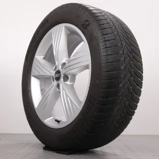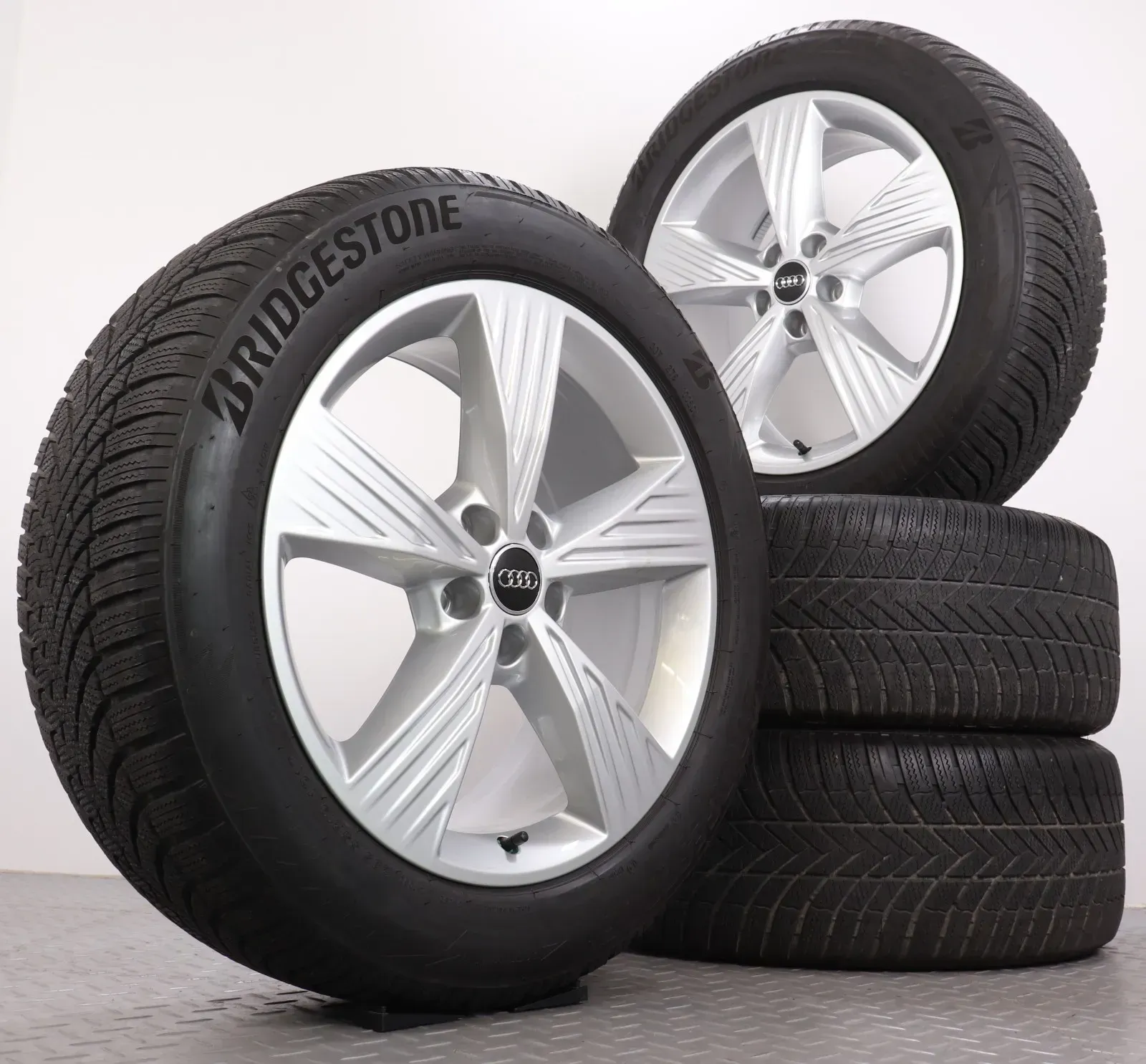 Winterräder 19 Zoll Audi Q4 e-tron F4 Original Felgen 89A601025B Winterreifen 235/55R19 101T AO (Audi-Original), Elect, + Bridgestone Blizzak LM-005 5-Arm Design silber 8x19ET45
