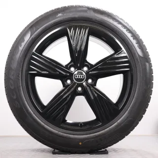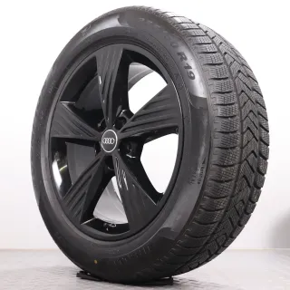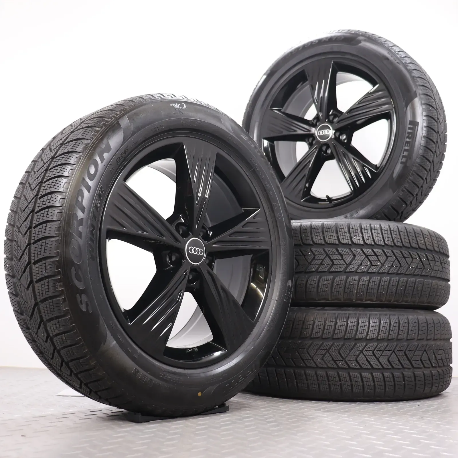 Winterräder 19 Zoll Audi Q4 e-tron F4 Original Felgen 89A601025B Winterreifen 235/55R19 101T AO (Audi-Original), Elect, + Pirelli Scorpion Winter 5-Arm Design schwarz glanz 5x112