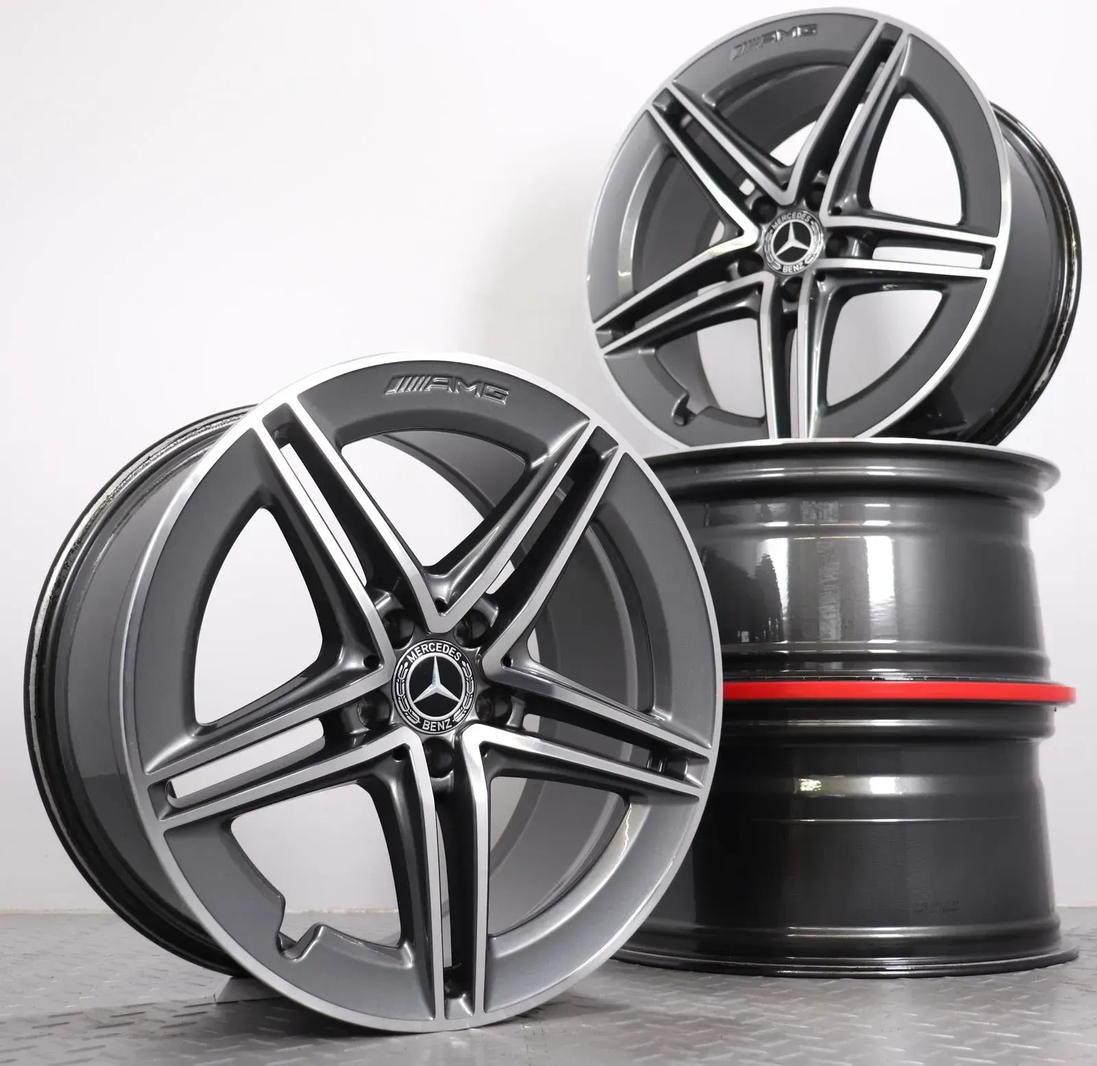 Alufelgen 19 Zoll Mercedes-Benz C63 C63S W205 Original Felgen Felgensatz AMG 5-Doppelspeichen A2054010501 & A2054010601 Tantalgrau glanzgedreht 8,5x19ET38 & 9,5x19ET56 5x112 66,6