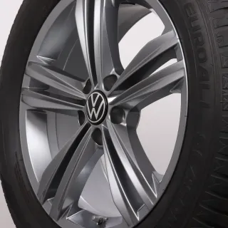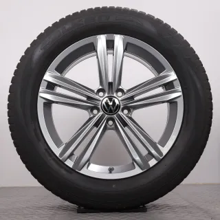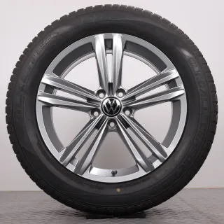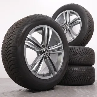 Allwetterräder 18 Zoll VW Tiguan II & Allspace Original Felgen 5NA601025M Ganzjahresreifen 235/55R18 104V XL Falken Euroall Season AS210 Sebring galvanograu 7x18ET43