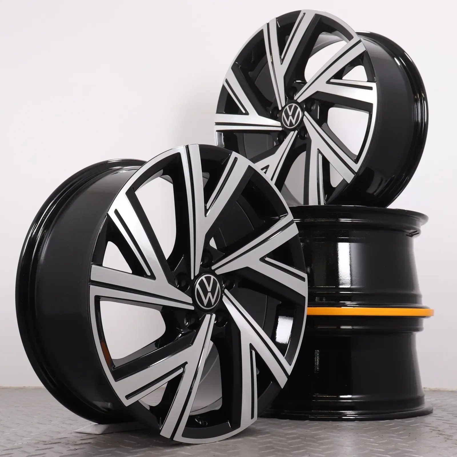 Alufelgen 18 Zoll VW Golf 8 VIII Original Felgen Felgensatz Bergamo 5H0601025M schwarz glanzgedreht 7,5x18ET51 5x112 57,1mm