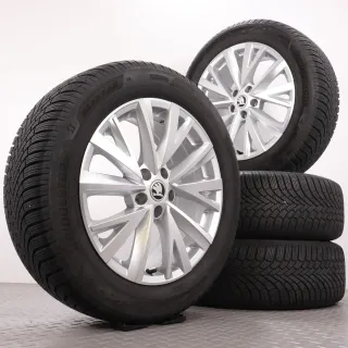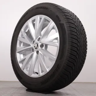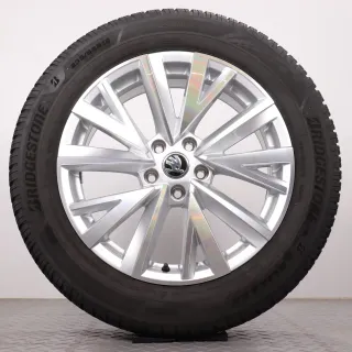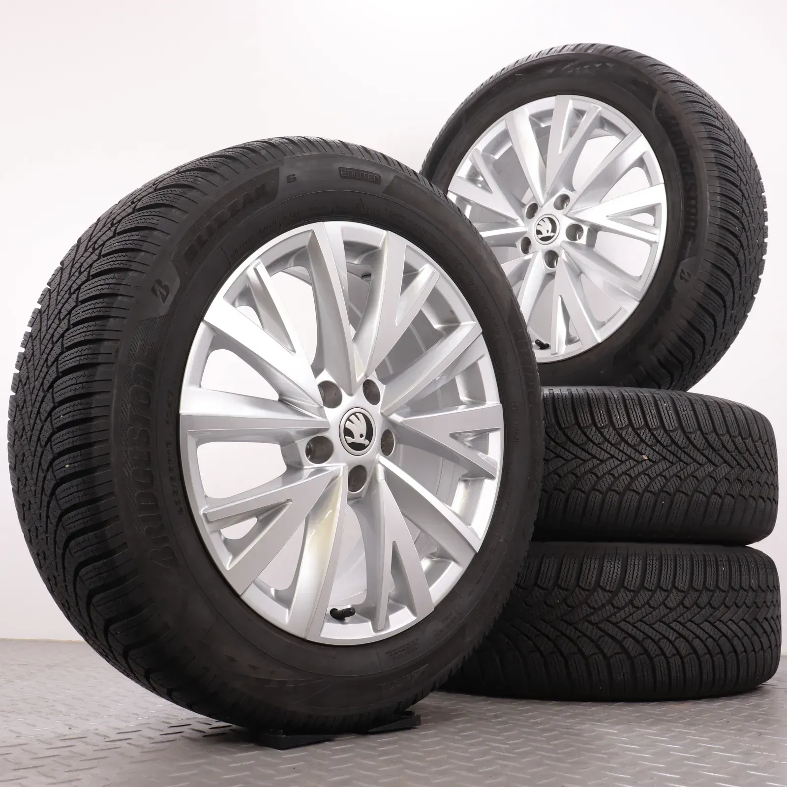 Winterräder 18 Zoll Skoda Kodiaq II PS Original Felgen 57H601025P Winterreifen 7-7,5mm DOT24 235/55R18 100V XL Bridgestone Blizzak 6 silber glanzgedreht 7,5x18ET40