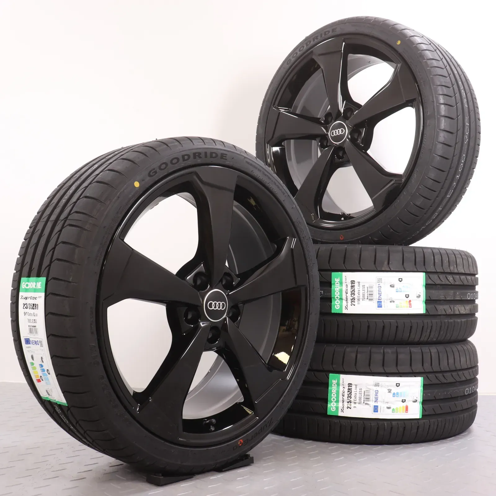 Sommerräder 19 Zoll Audi A3 S3 RS3 8V Original Felgen 8V0601025ES Sommerreifen 235/35R19 91W XL Goodride Z107 Zuper Eco Rotor 2 AUDI SPORT schwarz glänzend 8x19ET49 5x112 NEU