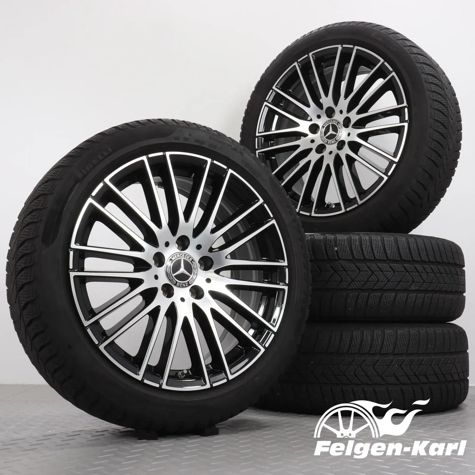 Winterräder 18 Zoll Mercedes-Benz C-Klasse W206 S206 Original Felgen A2064014900 Winterreifen 225/45R18 95H Pirelli Winter Sottozero 3 MOE 10-Doppelspeichen Design Schwarz 5x112 mm