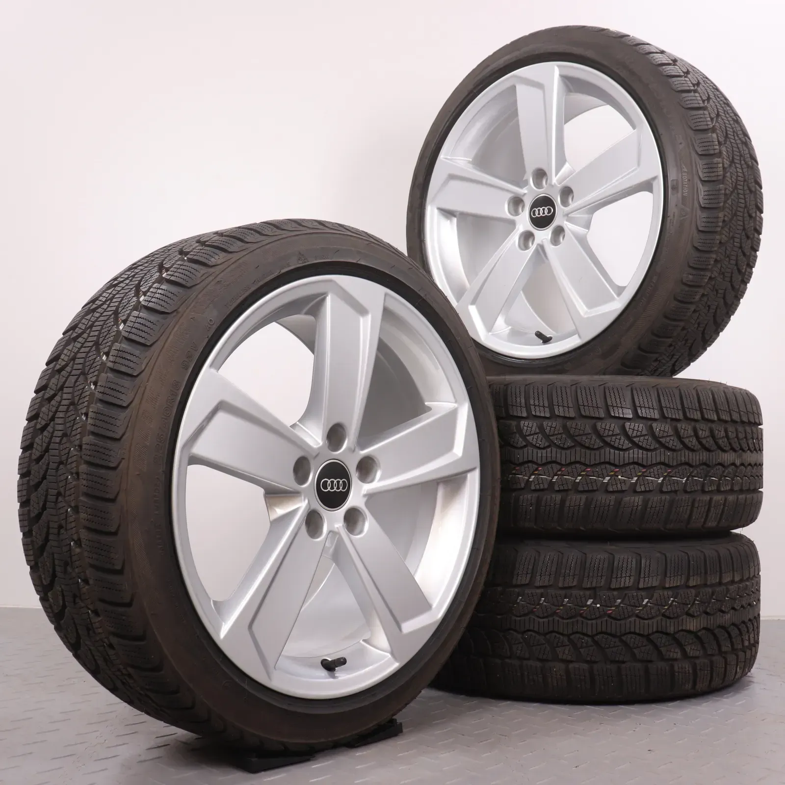 Winterräder 18 Zoll Audi A3 S3 8V Original Felgen 8V0601025DL Winterreifen 7,5-8mm 225/40R18 92V XL AO Bridgestone Blizzak LM-32 5-Arm-Rotor-Design Silber